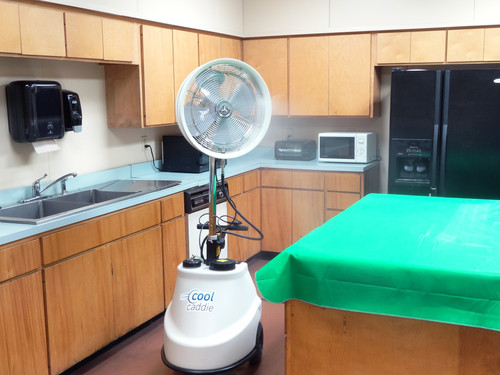 Commercial-grade wheels, locking casters, adjustable neck height and heavy duty handle make Cool Caddie very easy to move and transport whether empty or full. The shrouded fan oscillates and has a variable-speed dial, making it quite versatile. Available with a 18 or 24 inch fan head, the Cool Caddie is great for tailgates, hotels, sports practice, outdoor weddings, restaurants, patio kitchens, RVs, boat docks… wherever you want!