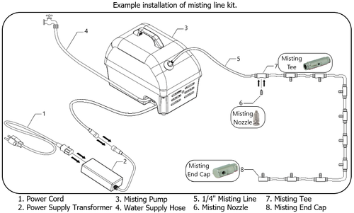8 Nozzles with Tee Fittings and Clips for attaching to awning or roof eave or create a 3 Nozzle Ring to attach to existing fans